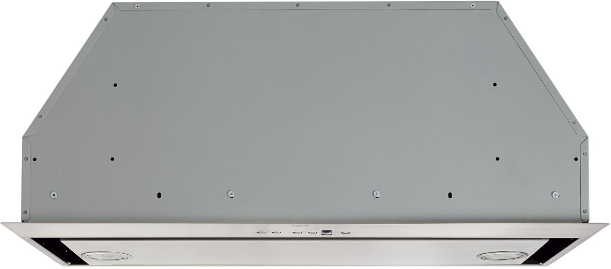 Perimeter Aspiration maximizes flow at the hood edges; the flat stainless panel provides a clean filterless look; available in 21-3/16”, 28-5/16” widths