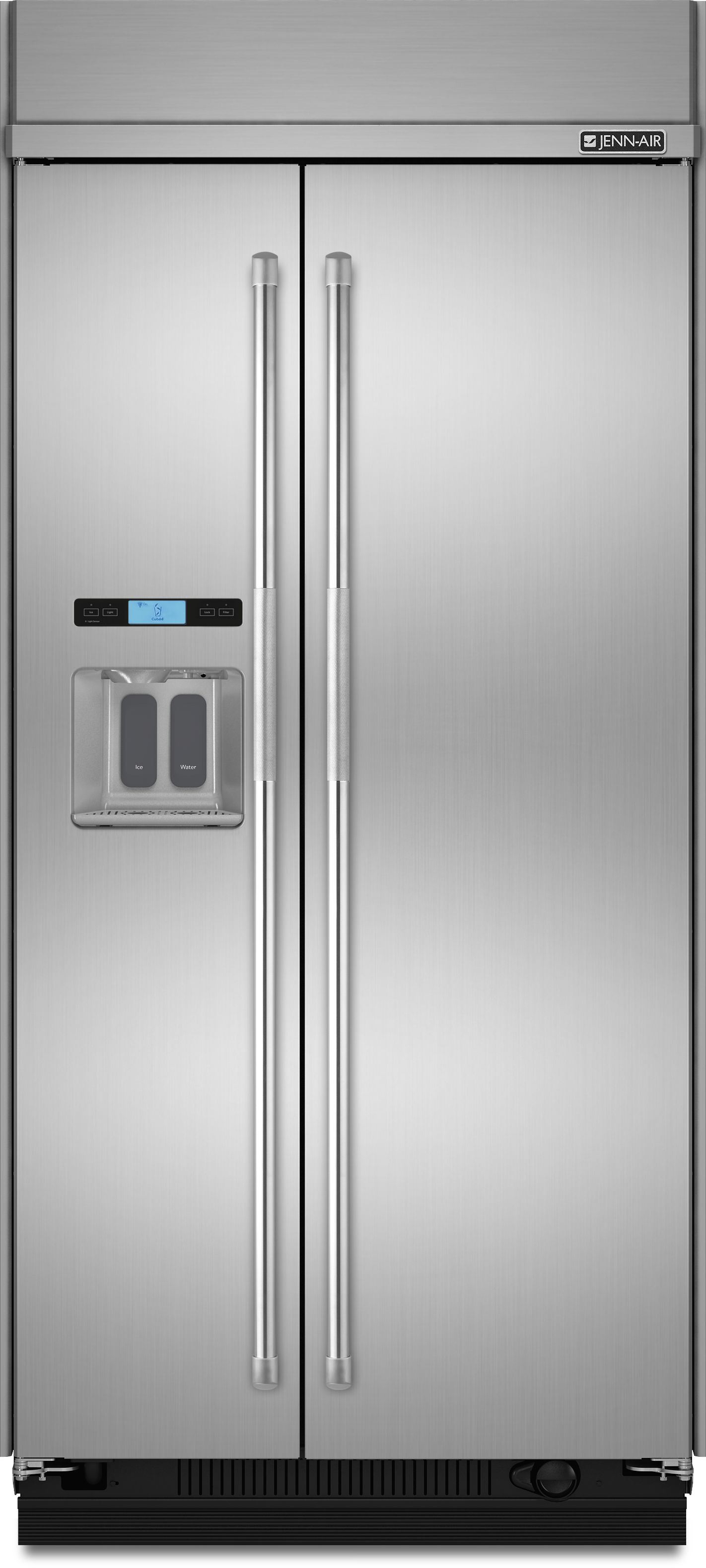 This Jenn-Air® built-in side-by-side refrigerator features our exclusive Obsidian interior that complements the convenient side-by-side design and exceptional food preservation. It also features an in-door water dispenser for ice and filtered water. This model is available in Euro-Style Stainless (JS42SSDUDE) and Pro-Style Stainless (JS42PPDUDE) exterior design styles.Read More