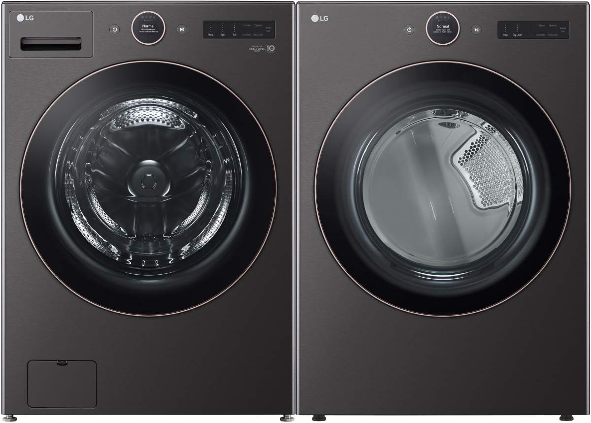 LG Black Steel laundry pair with a 5.8 cu. ft. capacity front load washer and a 7.4 cu. ft. capacity front load electric dryer.Read More