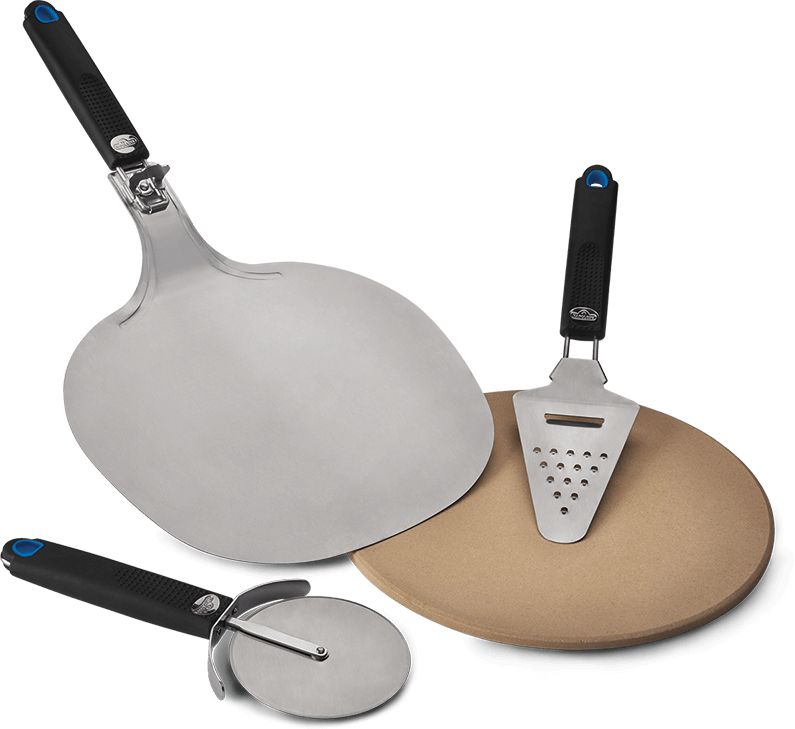 Napoleon has a pizza party in a box for those who live for delicious homemade pizza. The Pizza Lover's Starter Kit has everything you need for a backyard pizza party except for the dough and toppings. Grill up the perfect medium-sized pizza on the Pizza Stone. The porous stone draws moisture away from the pizza dough for the perfect, crisp crust. Easily transfer your dough to the grill and then to your waiting friends and family with the Stainless Steel Pizza Peel, which folds for space saving storage. Cut the perfect slice with the included Pizza Wheel, and top everything off with a little extra cheese from the 2-in-1 Cheese Grater Slicer. If pizza is your passion, then this Pizza Lover's Starter Kit is perfect for you.Read More