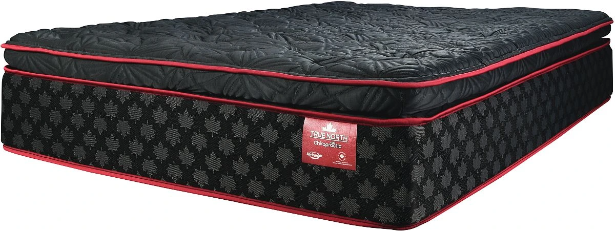 Our True North Chiropractic® Whistler pillow top mattress is made with 1200 individually wrapped ergonomic 7-zones of pocket coils designed to offer the optimum in support and spinal alignment and the individually wrapped pocketed coils reduce motion transfer resulting in the reduction of partner disturbance.Read More