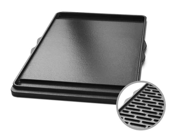This porcelain-enameled cast iron griddle is perfect for making pancakes in the morning or fajitas for dinner. It’s also great for grilling delicate foods that would typically fall through the grates, like fish and veggies. The double-sided griddle features a smooth side and a ribbed side. Both surfaces provide ultimate heat retention and distribution, ensuring evenly cooked food.